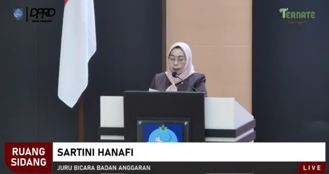 LENTERA MALUT – Juru Bicara Badan Anggaran (Banggar) DPRD Kota Ternate, Sartini Hanafi, dalam Rapat Paripurna Pengesahan RAPBD Tahun Anggaran 2026 pada Rabu malam (26/11/2025), menyampaikan Laporan Badan Anggaran terhadap Nota Keuangan dan Rancangan Peraturan Daerah tentang APBD Tahun 2026.