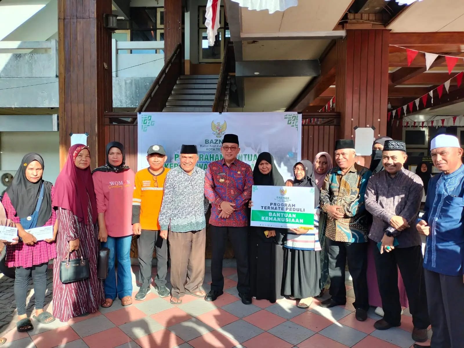 Badan Amil Zakat Nasional (Baznas) Kota Ternate menyalurkan bantuan kepada warga terdampak gempa bumi di Kota Ternate, Kamis, (9/4/2026). Penyerahan bantuan dilakukan langsung oleh Wali Kota Ternate, M. Tauhid Soleman, di Posko Penanganan Bencana Gempa Bumi eks Kantor Wali Kota.
