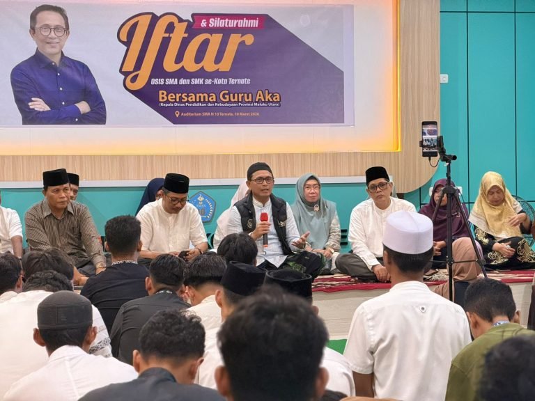 LENTERA MALUT – Suasana hangat dan penuh kebersamaan terasa dalam kegiatan buka puasa bersama yang digelar Dinas Pendidikan dan Kebudayaan (Dikbud) Provinsi Maluku Utara bersama pengurus OSIS SMA dan SMK se-Kota Ternate. Kegiatan yang berlangsung di SMA Negeri 10 Kota Ternate, Selasa (10/3/2026) itu menjadi ruang silaturahmi antara jajaran dinas, pihak sekolah, dan para pelajar.