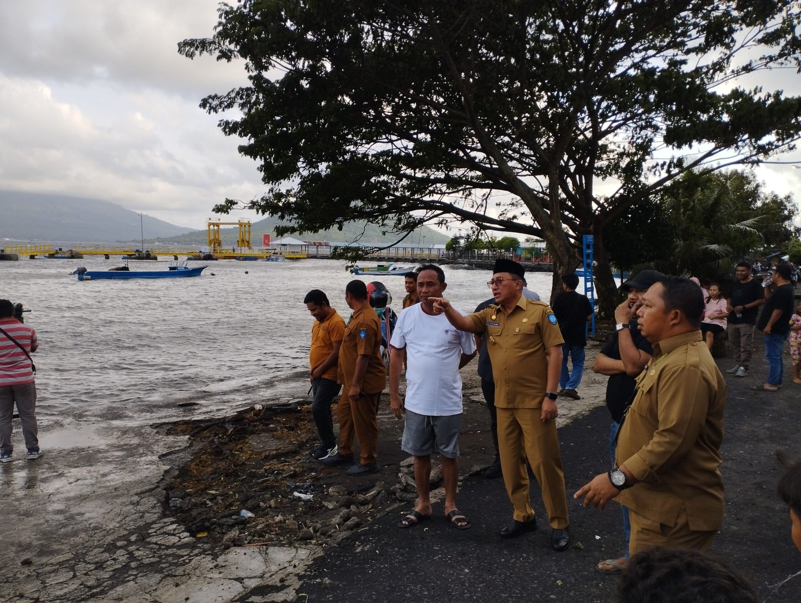 Wali Kota Ternate didampingi Sekda dan Anggota DPRD saat meninjau lokasi banjir rob di pesisir Kelurahan Bastiong Talangame sore kemarin Selasa, (7/10/2025) Dok : LM