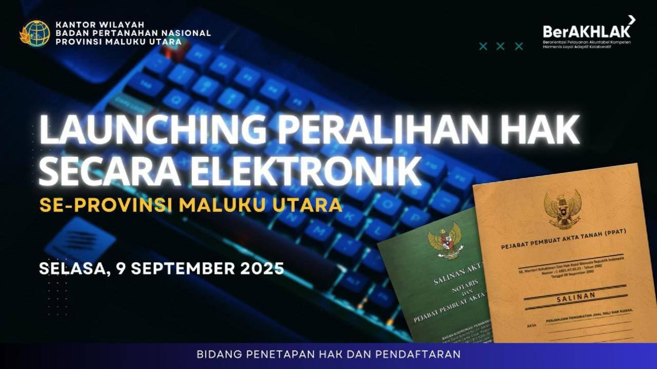 LENTERA MALUT – Kabar menggembirakan datang dari dunia pertanahan! Mulai hari ini, masyarakat di seluruh Maluku Utara tak perlu lagi menghabiskan waktu dan tenaga untuk mengurus balik nama tanah secara manual. Kementerian ATR/BPN melalui Kanwil BPN Maluku Utara resmi meluncurkan Layanan Peralihan Hak Tanah Elektronik!