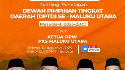 Dewan Pimpinan Wilayah (DPW) Partai Keadilan Sejahtera (PKS) Maluku Utara (Malut) resmi mengumumkan pengurus Dewan Pimpinan Tingkat Daerah (DPTD) se-Malut masa bakti 2025-2030.