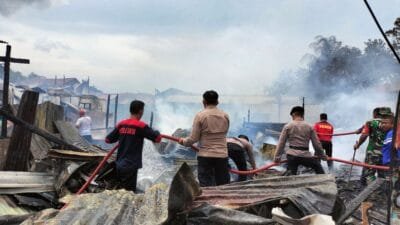 Peristiwa kebakaran yang terjadi di Kelurahan Kota Baru menyebabkan puluhan kamar kos hangus dilahap api.