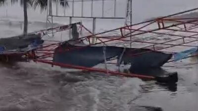 Cuaca buruk melanda dengan hujan deras dan angin kencang. Tak hanya di Bastiong Talangame, terjangan angin juga dilaporkan merusak atap rumah warga di Kelurahan Kastela.